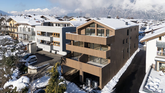 Das Projekt umfasst insgesamt fünf Eigentumswohnungen und präsentiert sich als architektonisches Juwel im grünen Vorort von Innsbruck. Besondere Highlights sind die beeindruckende Fassadengestaltung, die großzügige Raumaufteilung sowie die atemberaubende Penthousewohnung mit Blick über Götzens.